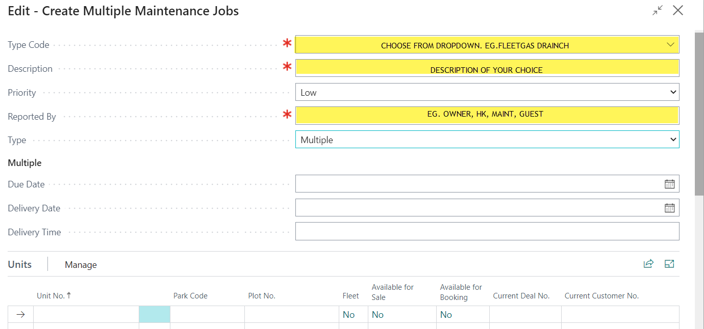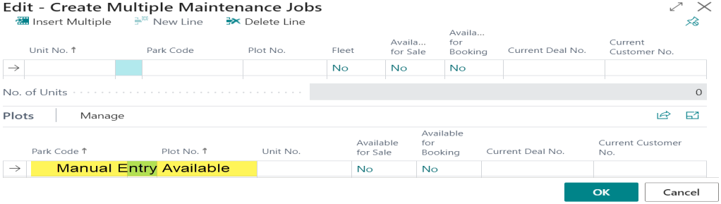 | 4 | Choose units using Insert Multiple or by typing park and plot |