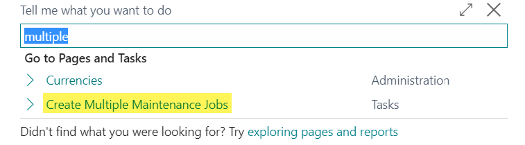 If it is not visible on the ribbon, select Create Multiple Maintenance Jobs from the search results.