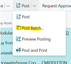 This article explains how to batch post multiple documents at once in Business Central. This includes purchase order receipts, sales invoices, and purchase invoices. Batch posting helps save time by processing multiple transactions together instead of one by one.